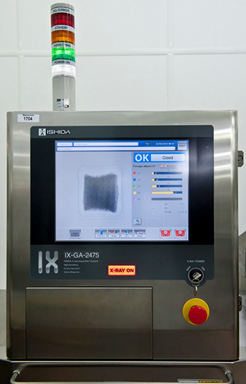• Inspeksi menggunakan Ishida IX-GA-2475 X-ray system, seal tester, dan vision system